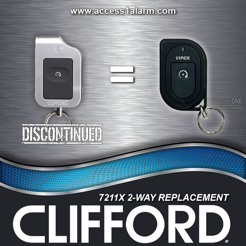 The Clifford 7211X LED 2-Way remote control transmitter is Clifford's first generation LE 1-button remote control transmitter that started an industry trend and is DISCONTINUED. This Viper 7211V replacement remote control is the direct replacement for the Clifford remote control and made to fit the user's hand comfortably, enabling effortless and intuitive single-handed operation. This remote works with many Viper, Python, AutoMate, AstroStart and Clifford system