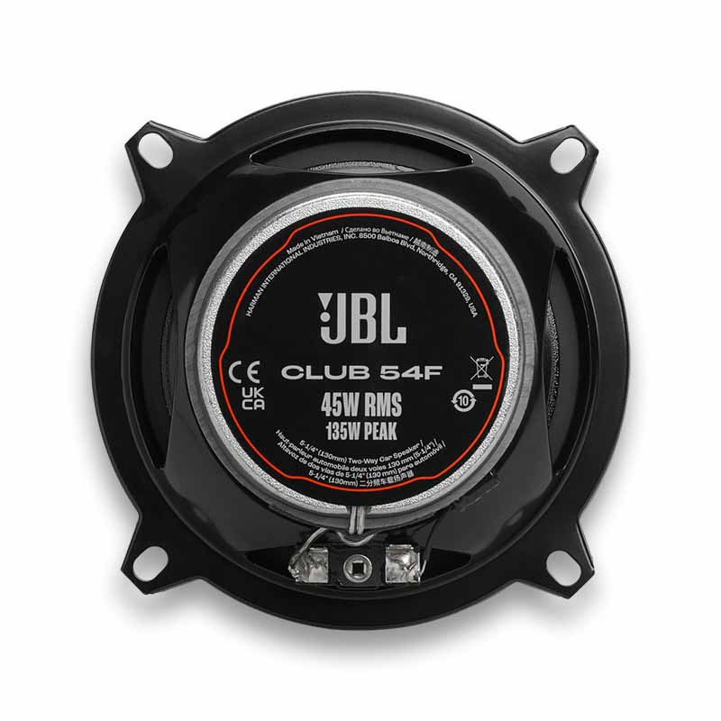 Club coaxial speakers that will bring JBL pro sound to your vehicle. Their compact design means they'll fit into more vehicles than many other brands, and their high sensitivity delivers outstanding performance even with modestly-powered factory systems. Rugged polypropylene cones with the Plus One™ design deliver hard-hitting bass and long performance life. Edge-driven silk dome tweeters deliver broader and smoother high frequency response, never-harsh regardless of output level.