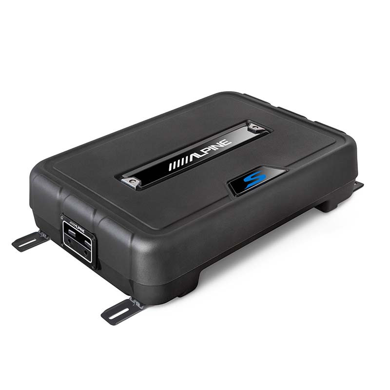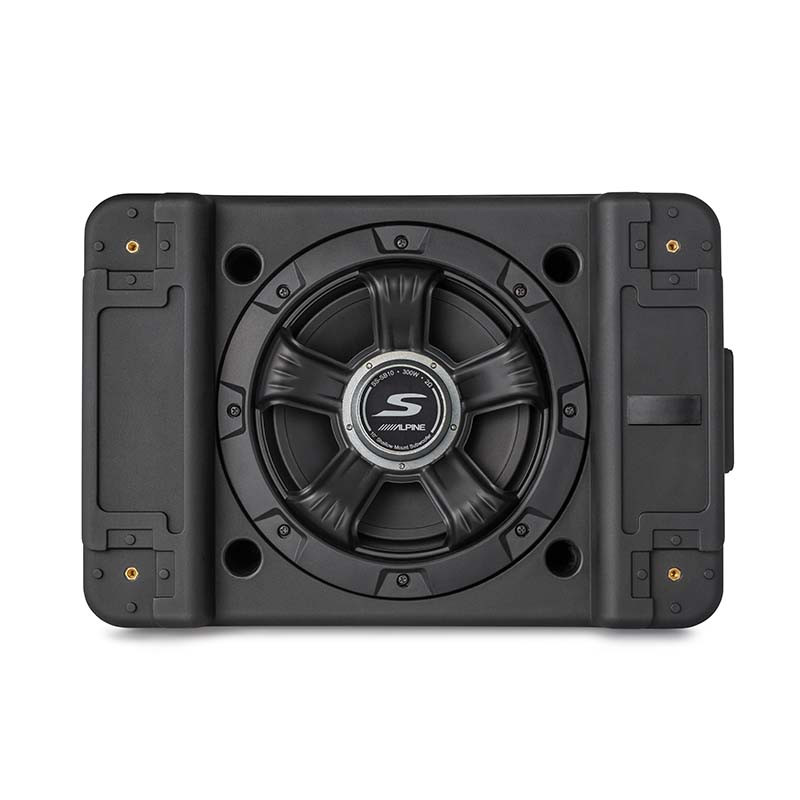 Alpine’s 10” S-Series Shallow Preloaded Subwoofer Enclosure measures at a minimal 4.5” deep to deliver clean and reliable bass performance in most vehicle applications.