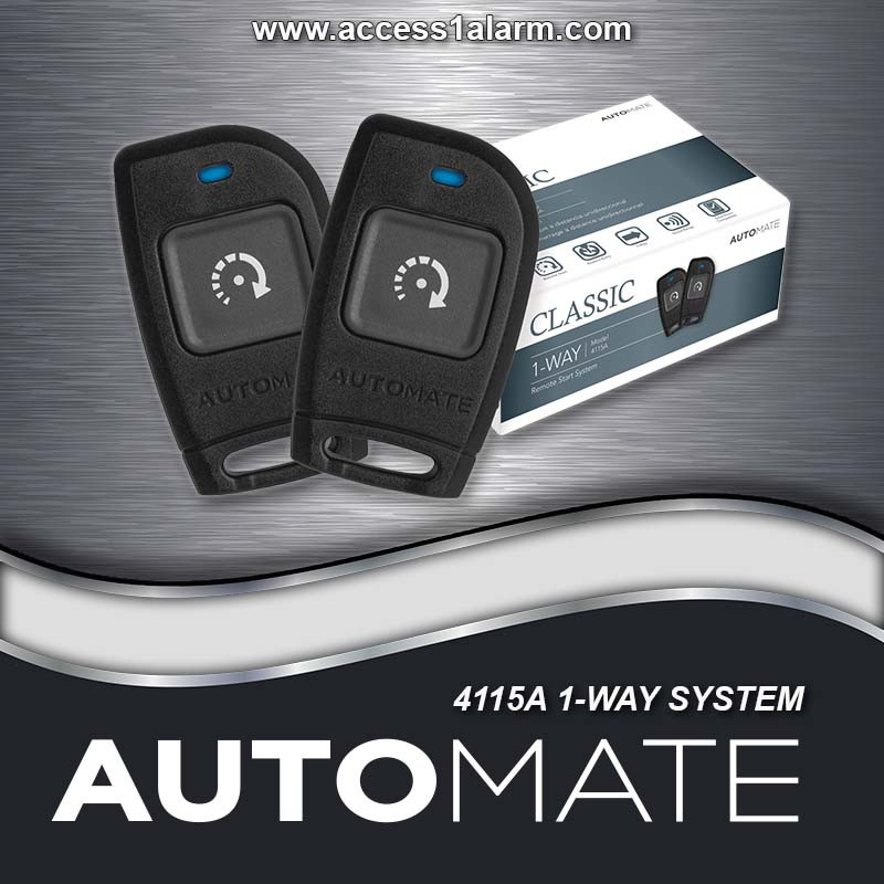 Remote start your vehicle from 1/4-mile away with the addition of this 1-button AutoMate remote start system. Your vehicle will operate just like factory but with the added feature of remote start! This system comes standard with a pair of 1-way 1/4-mile range 1-button remote controls.