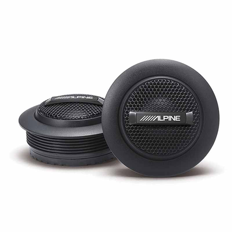 The S-S10TW includes two tweeters that measure at a mere 1” with a mounting depth of .70” for easy installation in almost any vehicle. The tweeters can be flush mounted or installed with a high adjustable stealth OEM mount bracket (included), which allows them to be mounted on the top, bottom, or behind factory grill locations. The Alpine logo is removable for stealth installation applications. Each soft dome comes enclosed in an adjustable swivel cup housing and directs the sound optimized for listener preference and vehicle imaging. For a perfect system matching experience, pair the S-S10TW with Alpine’s S-Series sound family.