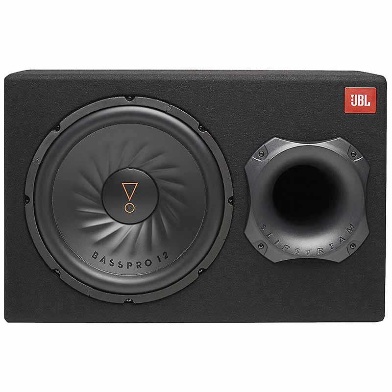 The JBL® BassPro12 powered subwoofer is the easy way to add high-output, low-distortion bass to a car audio system. Its Slipstream port design delivers deep, bottom-end bass while minimizing port noise. It also features improved motor-structure venting for thermal protection, a progressive spider to ensure superior mechanical reliability and an amplifier that delivers maximum power and flexibility. And with the system's remote level control, which lets you adjust bass level while driving, the only time you'll need to stop is for gas.